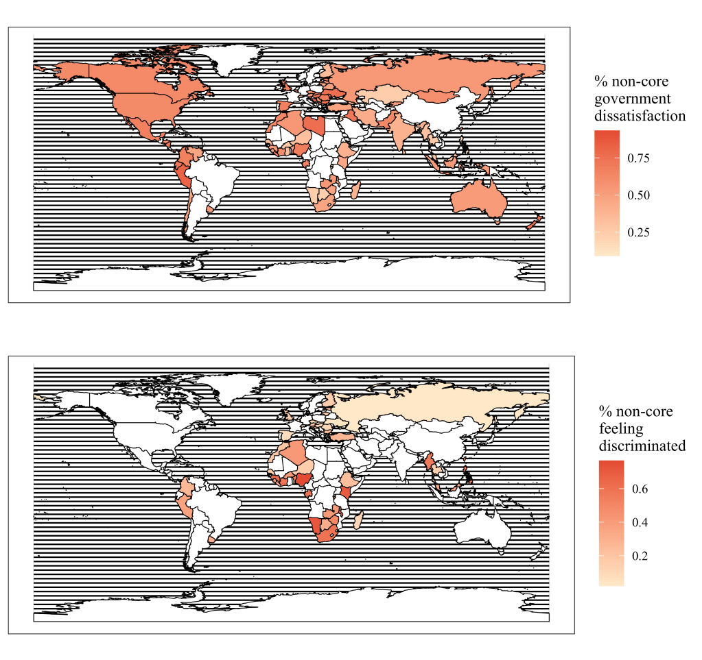 To test these expectations, I rely on my new SEAMS dataset, which is the most extensive, global collection of mass surveys used in the study of inclusive institutions so far. To capture minority grievances, I construct two dependent variables based on question items that tap into respondents’ attitudes towards government and their perception of being discriminated. I connect these with group-wise, time-varying information on ethnically-based power-sharing practices and institutions. The resulting data comprise 7260925 respondents, nested in 606 ethnic groups settling in 93 multi-ethnic countries between 1992 and 2018.